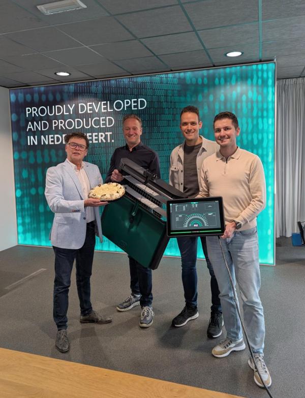 Op de foto: Jeroen op ten Berg (Directeur GBO), Erwin Stienen (Directeur Stienen), Loek Puts (Product Specialist), Maarten Leeters (Hardware Engineer)