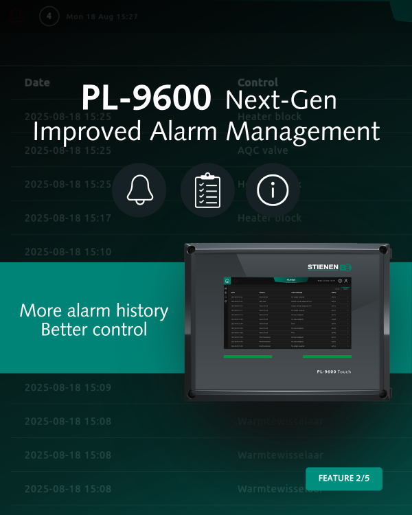Met de nieuwe PL-9600 ziet u niet alleen actieve alarmen, maar krijgt u ook een historielijst met de relevante loggegevens