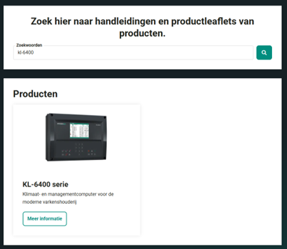 1. Ga naar stienen.com en login met uw Partner Login. Zoek naar KL-6400 (of uw gewenste product) via Zoeken of Download Center. Klik op Meer infomatie.